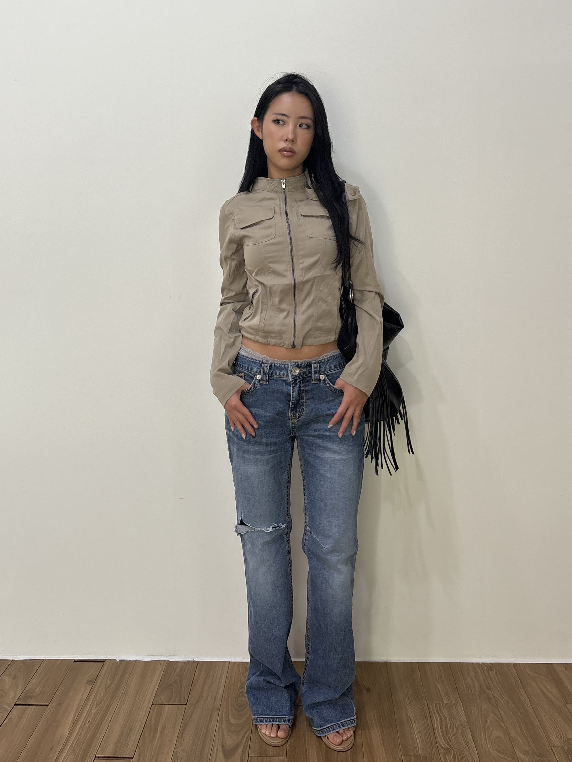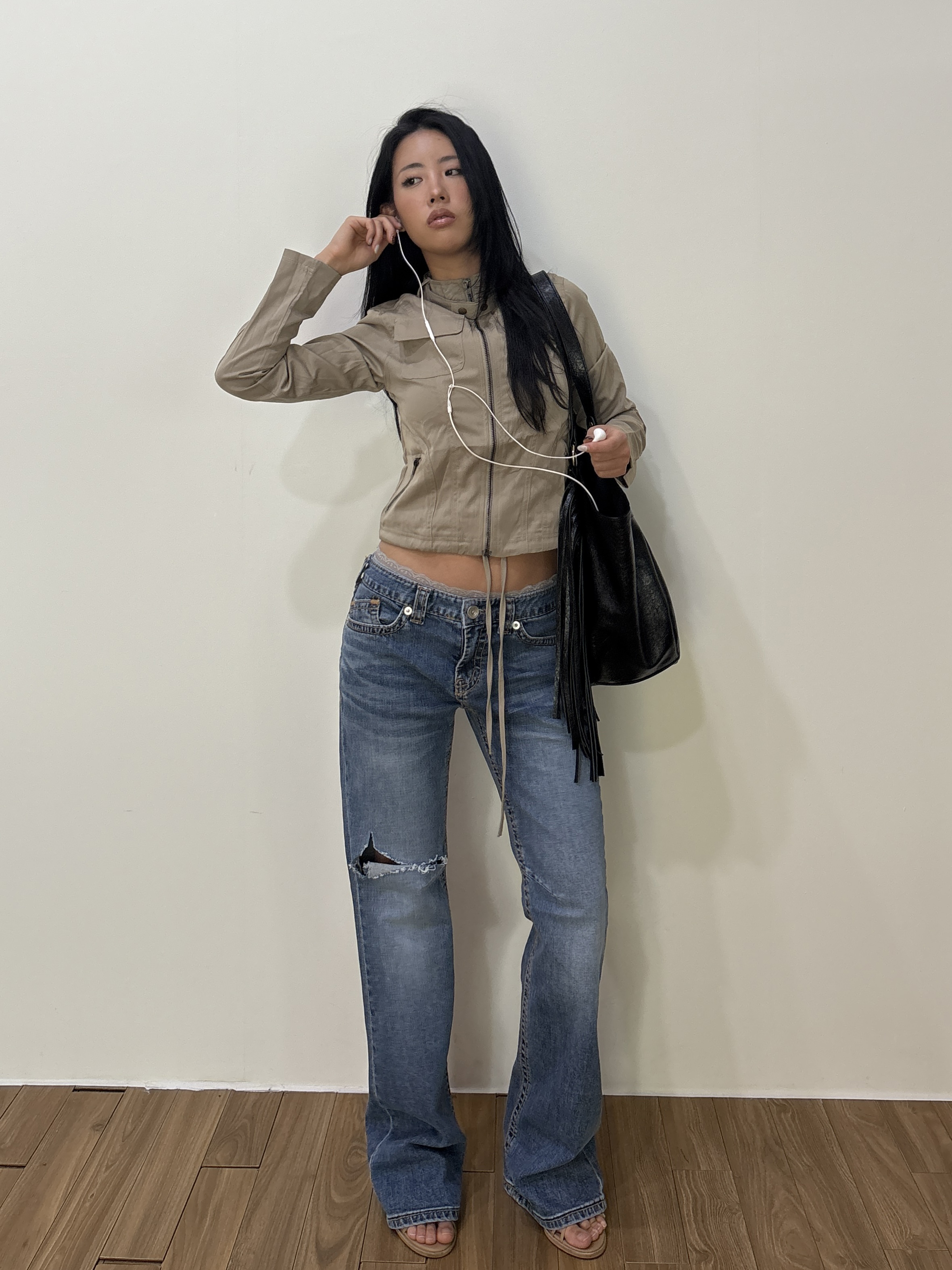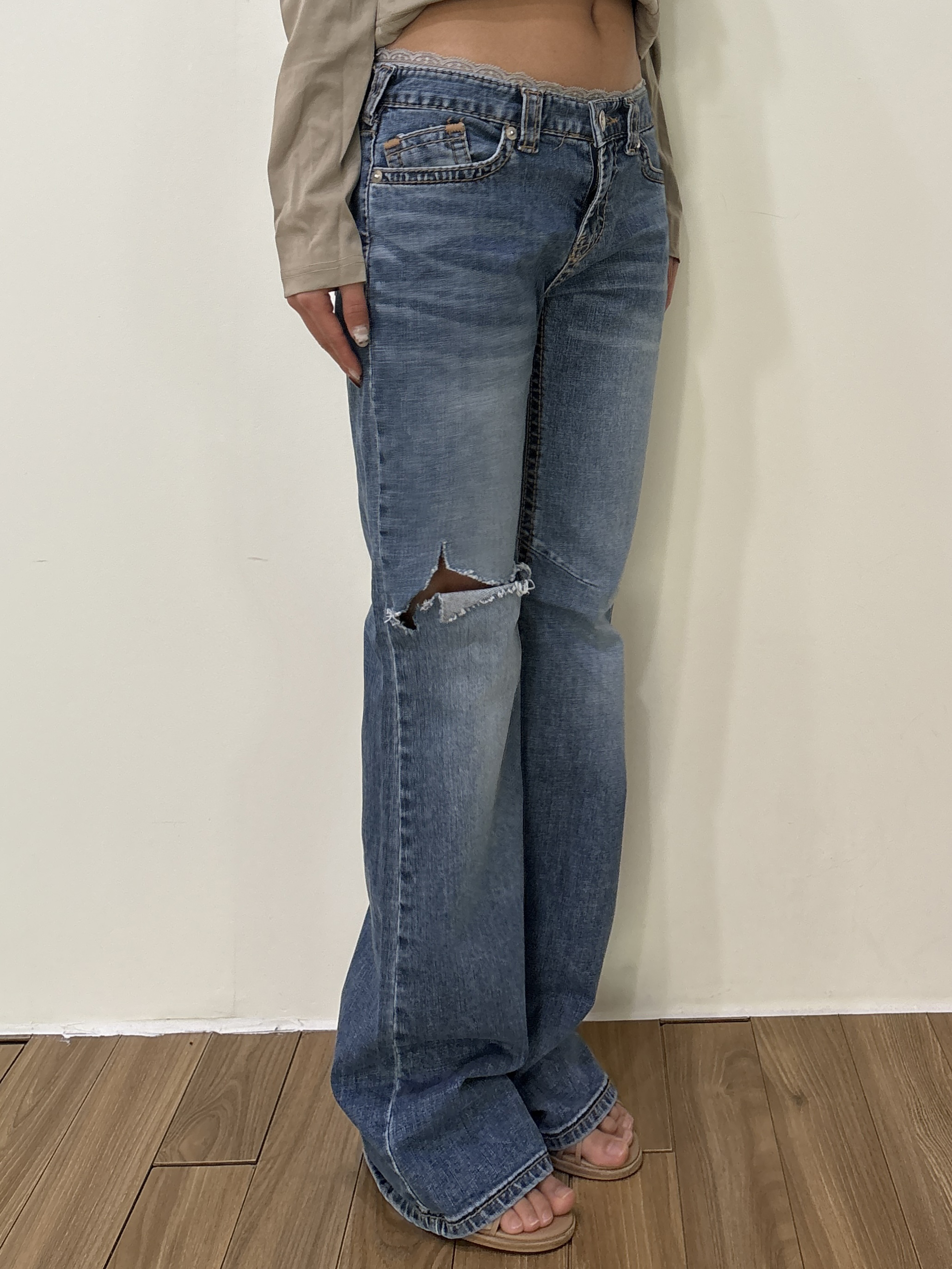 -Thigh distress detail